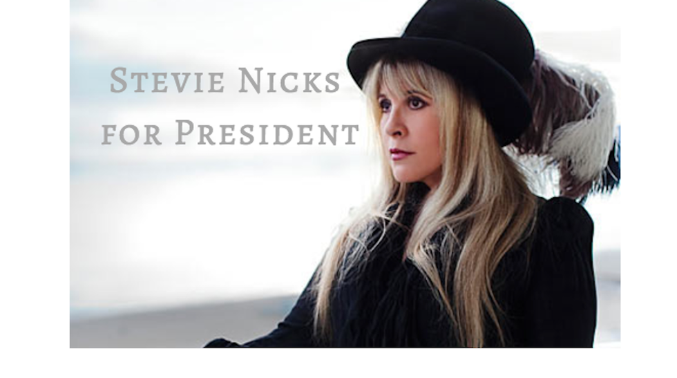 She's more than just chiffon and Rumors. But before you get any big ideas, this is not an actual political article. Many people have looked at this whole election as one big joke, so I’m going to play along with that. I’m making the (comical) radical statement that I think Stevie Nicks should be our next president. Now, there are probably some things you are wondering when I say this: