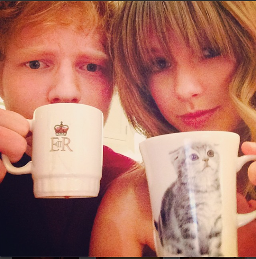 The two became especially close when Ed Sheeran opened for Taylor on her RED tour, and he also has a special friendship with Meredith, Taylor's cat (see mug).