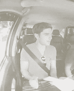 4. He dances in the car.