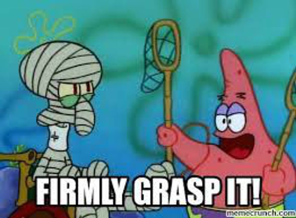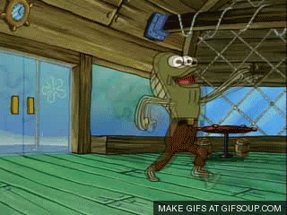 I can't help it, any time I use the word I say it like spongebob does, and I do the little hand motion as well.