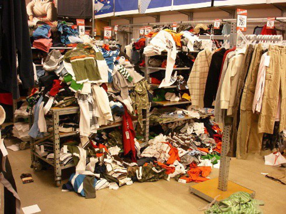 1. Cleaning up fitting rooms that have been destroyed.