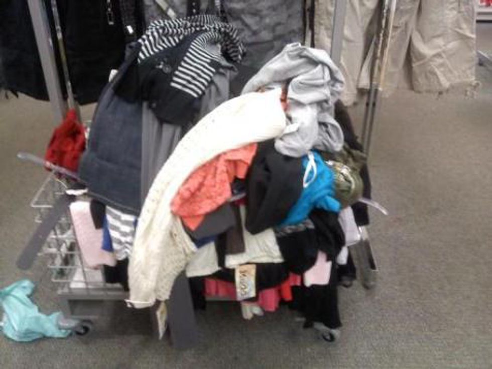 3. Fixing a table of clothes, just to have it destroyed less than 10 minutes later.