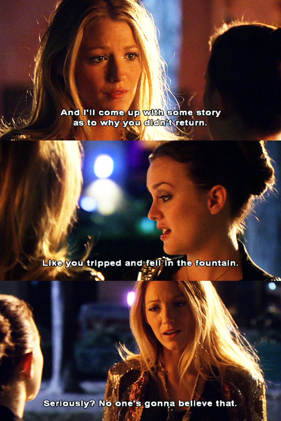 Blair and Serena are always covering for each other and even if the excuse is completely unbelievable, you can count on your best friend to do the same.