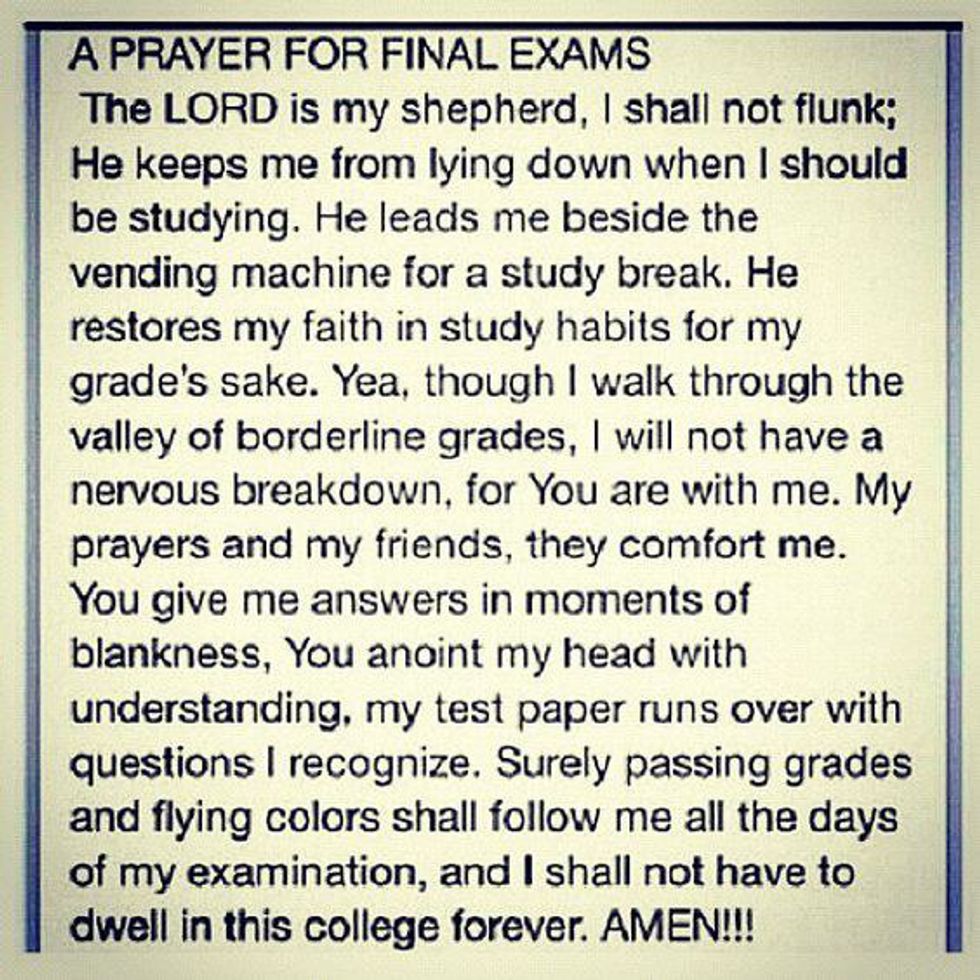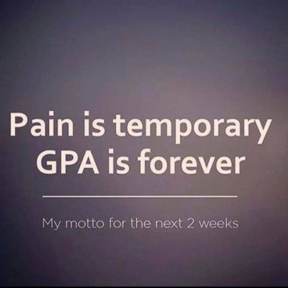 12. Come on folks, we can get through this. Who cares about physical appearance, and unbalanced diet, and lots of sleep loss? Our whole future is riding on a positive outcome to this semester (just like every semester)! No pressure, by the way….