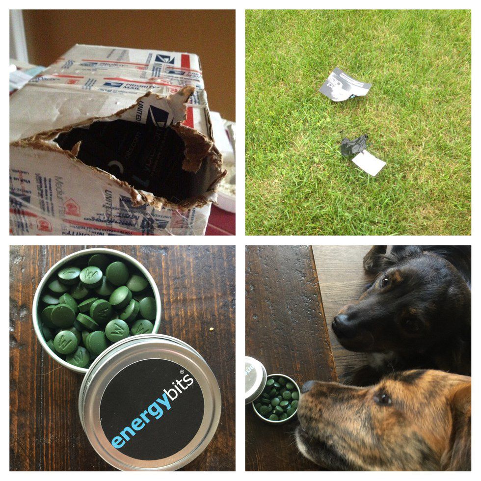 14. While most dogs steal steak dinners and chocolate, mine tear open boxes filled with spirulina and chlorella.
