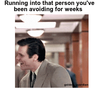 "Oh hey you." ....Bring on the awkward small talk you had been trying to avoid.