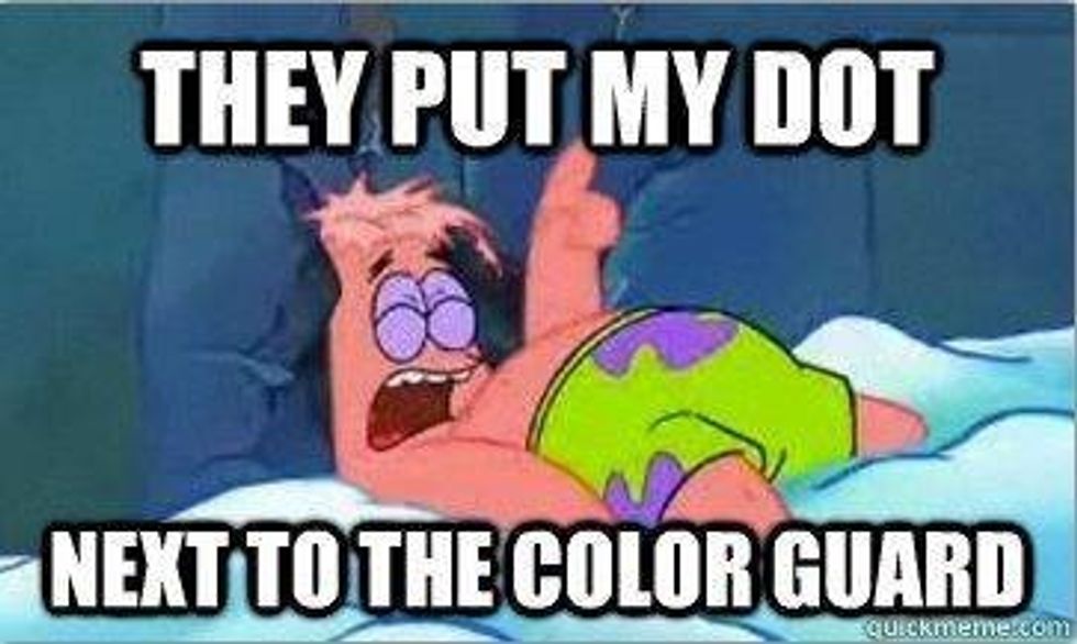 You get nervous when the band director has you 5 steps away from a color guard during a toss