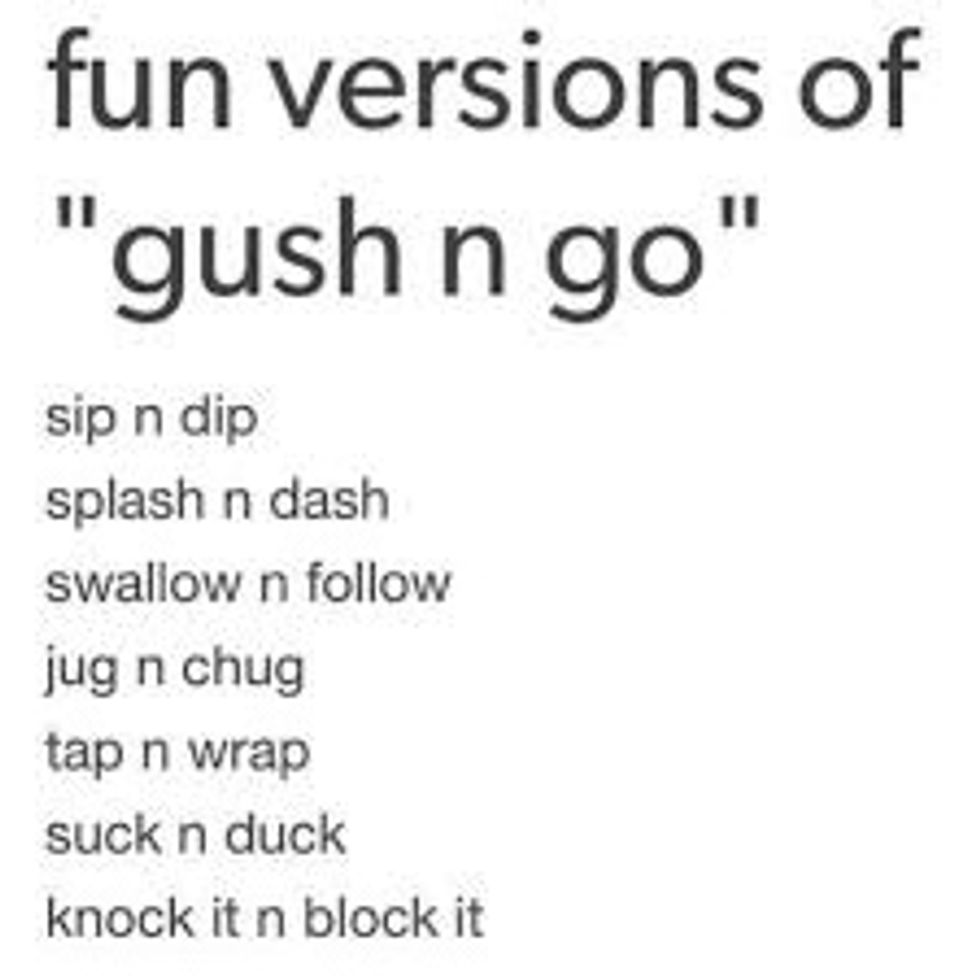 You are no stranger to the terms "splash n' dash" or "gush n' go"