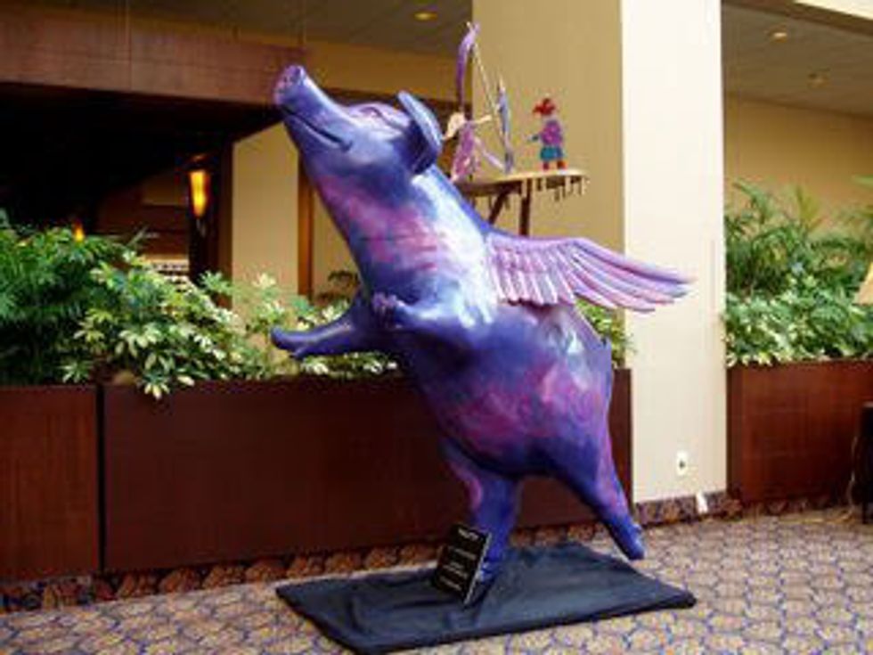 12. To you, pigs are statues with wings and strange outfits.