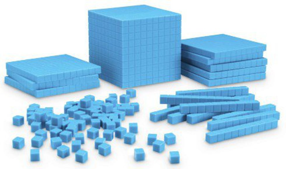 5. Learning math with the blue cubes that came in individual cubes, rows and blocks.