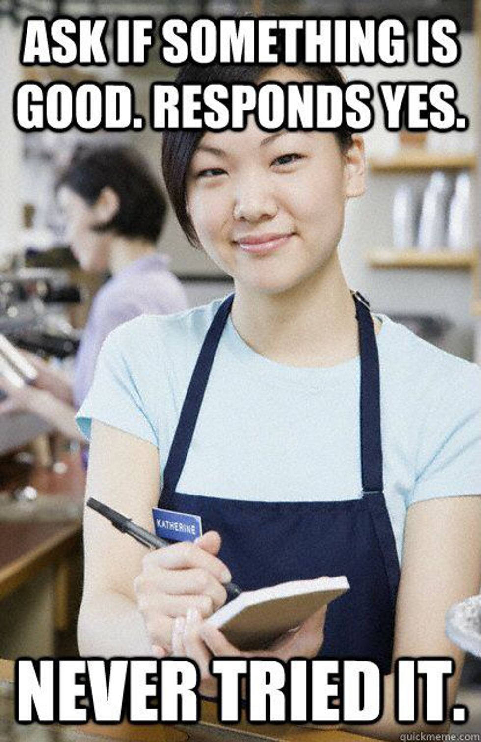 7. When customers seat themselves and by time you realize they are there, they are already hangry.