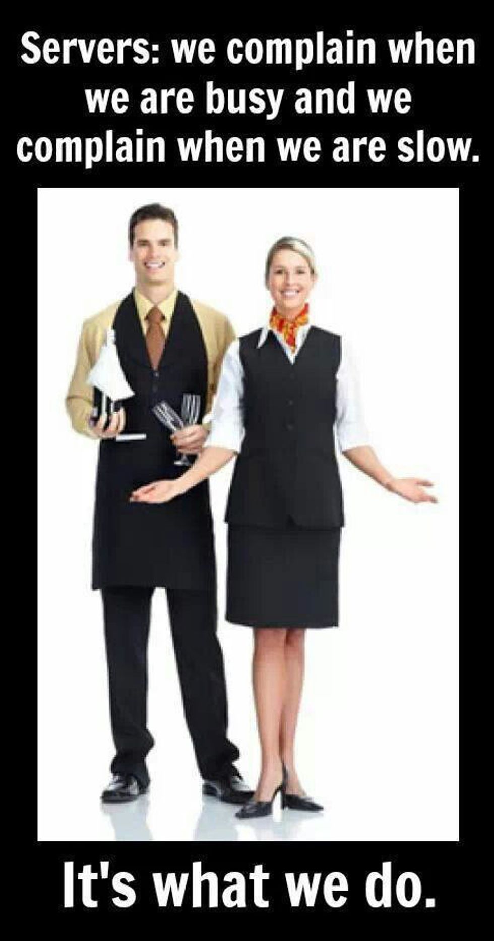 But regardless of what happens, we are servers; we complain no matter what but are thankful for the fantastic opportunities given to us and the honor we feel to have a good job, great management, and wonderful coworkers.