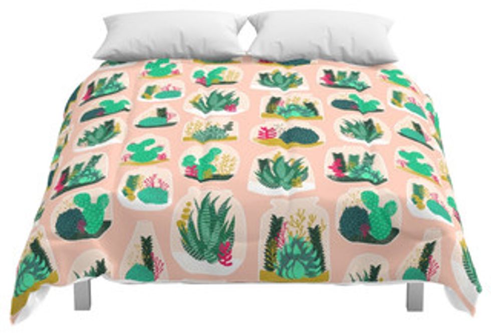 Deck out your dorm room with a unique and comfy succulent comforter.