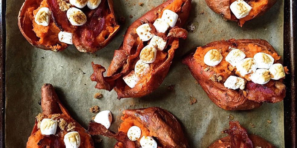 4. Twice-Baked Sweet Potatoes With Bacon, Brown Sugar & Marshmallows