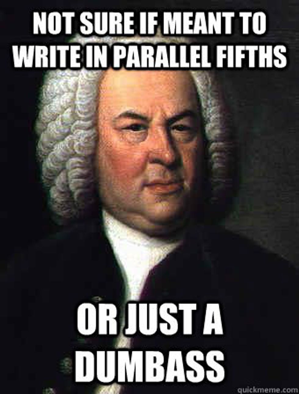 Turns out writing music is much more complex than anyone though. It also turns out part writing assignments take forever. Especially when you finally finish and find wrong doublings, parallels, and hidden octaves all over the place. Time to erase and start fresh!