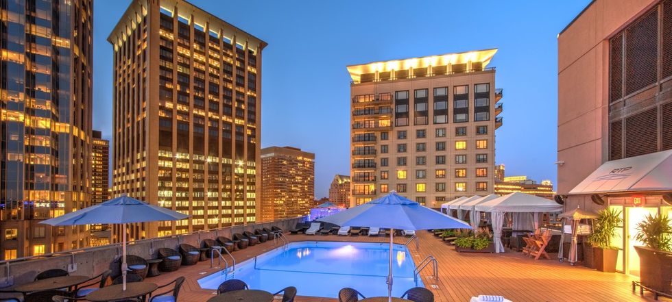 The rooftop pool at The Colonnade Hotel is located at 120 Huntington Ave, Boston, MA 02116