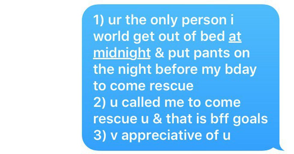 When you get to college, so much changes. You live away from home, you experience cafeteria "food," and you meet new people. You and your high school friends all went your separate ways, and you need to find someone new to lean on and be able to trust in the same ways. If you're as lucky as I have been, you'll meet this person in your first semester and become as close as my best friend and I have. You'll find someone you'll love forever and always have by your side. You still have your best friend from home, but this is a best friend in a whole different way. You learn so many new things from and with them.