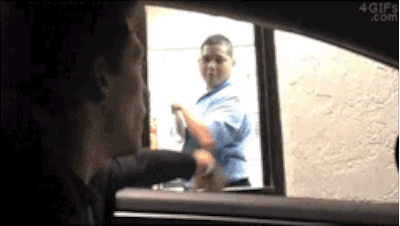 Not only does this slow down the drive-thru because the handout person has to run back to the cash window, but it never hurts to be patient.