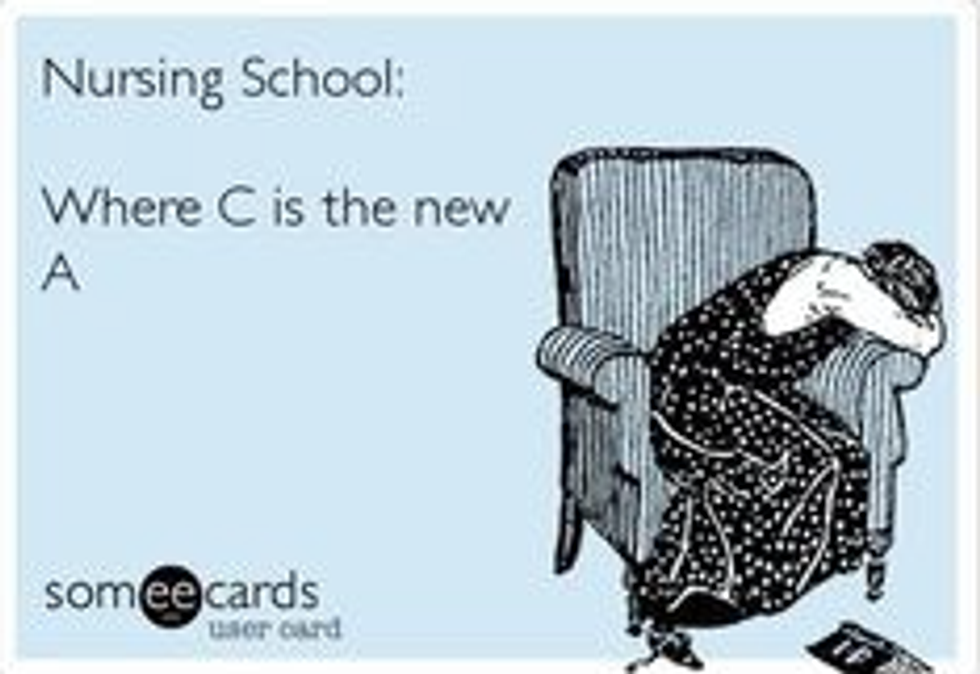 Although you may have had straight A's in high school, say goodbye to that 4.0 GPA you were hoping for. You envy college students that have straight A's but you also don't realize that they also don't study nursing. We tend to be so hard on ourselves for not getting perfect grades but we truly don't get ourselves enough credit for just passing (which may I mention is about an 80 to even pass a class).