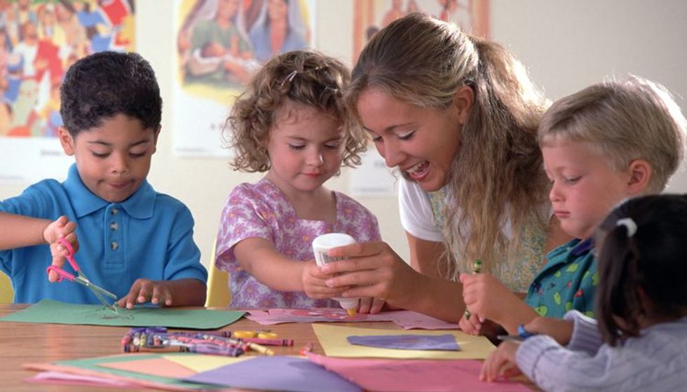 There has to be some way to gather the attention of twenty children at one time. This one seems to work most consistently. Plus they get the opportunity to yell at a teacher on command.