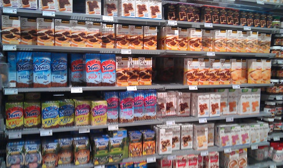Many of us eat chocolate sprinkles on our bread every morning. It's just common breakfast material. Here you have a whole aisle with different brands and different kinds of chocolate, all for your bread (yes, in the morning). It's delicious.