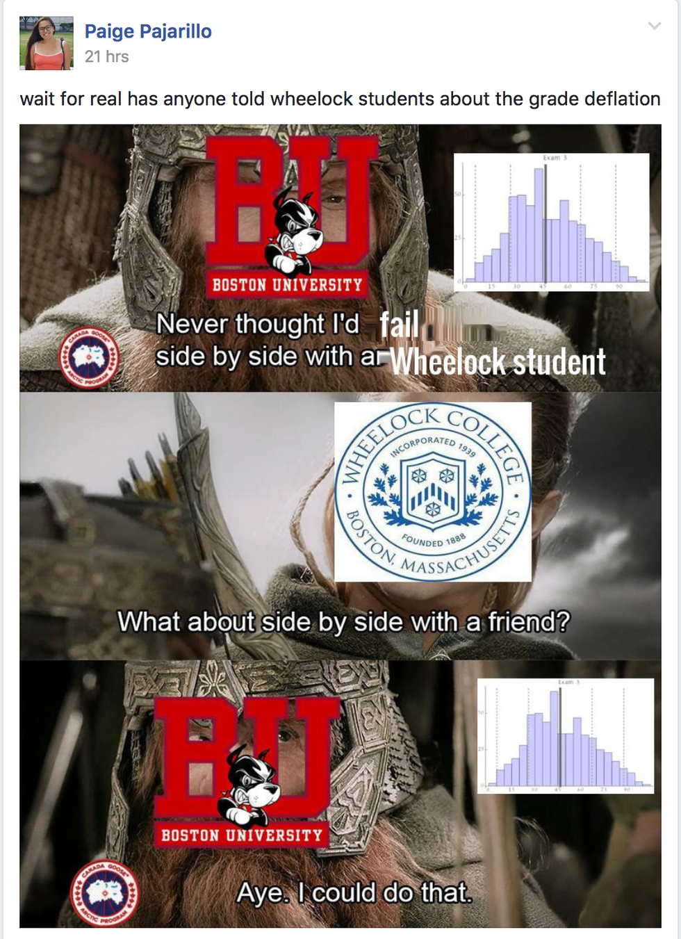 15. "You know, BU has the worst grade deflation in the entire country."'