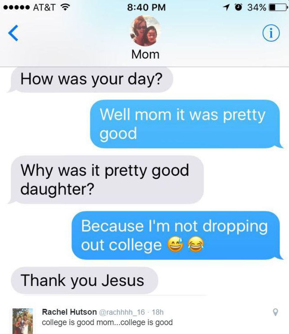 14. When the best part of your Mom's day is finding out you aren't dropping out of college.