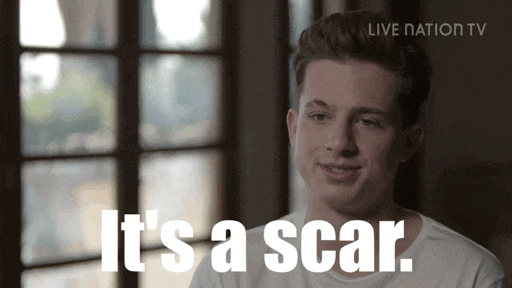 Probably one of Charlie's most distinct physical characteristics is his eyebrow. However, it's worth noting that his signature eyebrow isn't a tribute to Vanilla Ice. Charlie was actually attacked by a dog when he was two years old. As a result he received over 400 stitches and the unique scar that we see today.