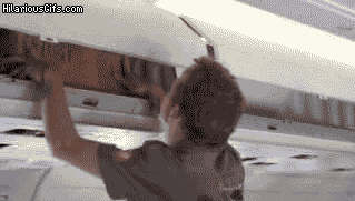14. Finally boarded. Oh look at that, I'm going to have to fight someone for space for my carry on.