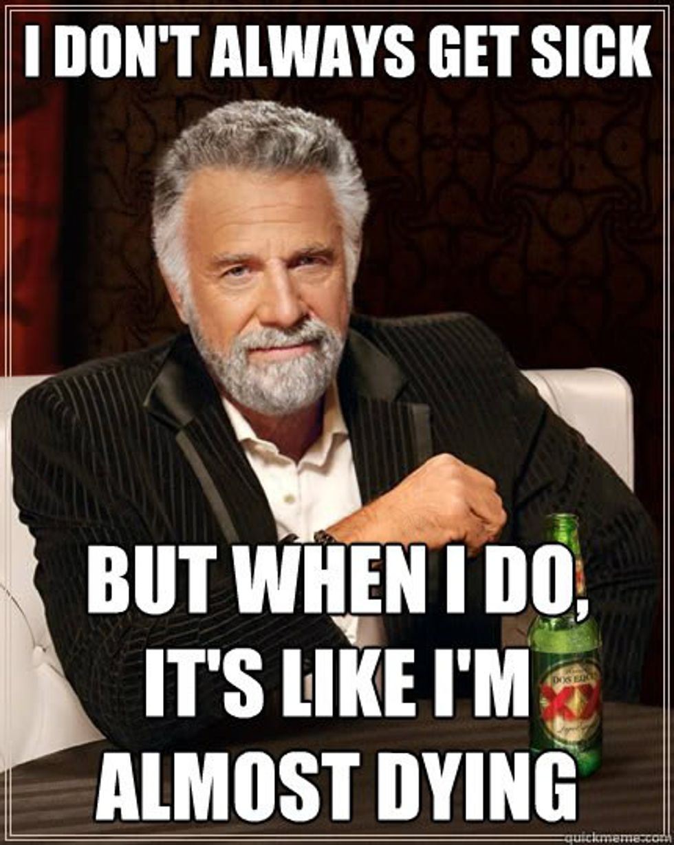 You've never been truly sick until you've been away from home in college and sick. It truly takes on a whole different meaning. Here are the thoughts we all have not just the first time we're sick, but every time we come down with something at the university.