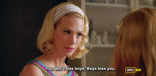 “You don’t kiss boys. Boys kiss you.” Yep, you heard the queen. If there’s anything society has been lacking lately it is boys with the courage to actually pursue a woman the way they are supposed to. Ladies, we don’t kiss boys. They kiss us.