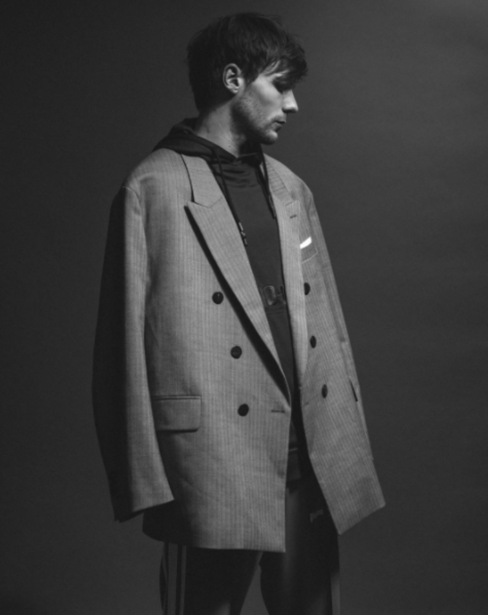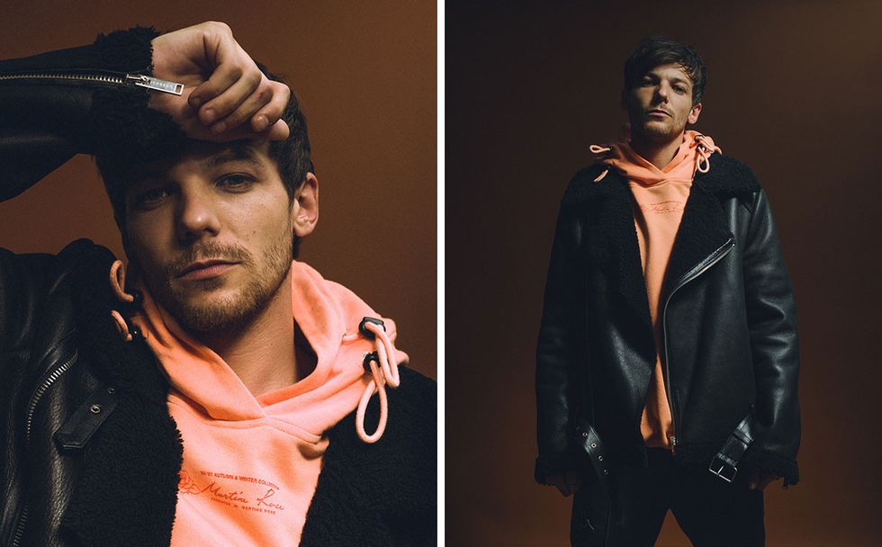 The mix of rocker black leather and then a Starburst pink hoodie is so unique yet so understated on Louis. The dramatic hand on his forehead is literally my reaction when I look at these.
