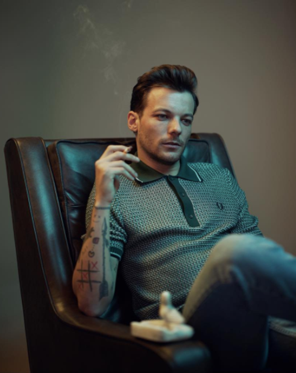And we now begin a series of photos taken by Phil Sharp for Noisey... Based on Louis' own lyrics in his latest track Just Like You, he always has his cigs in his left hand. Smoking is bad, DON'T DO IT, but appreciate the art that is Louis smoking against a dark backdrop.