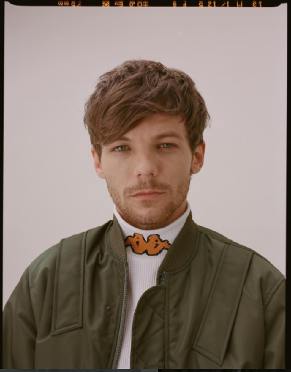 This is by far one of the most beautiful and unique photos we have of Louis to date. It's an angle never really explored on him before, and his soft expression and MIDDLE PART hairstyle is really a gem. And then, of course, you got the peach aesthetic going on. Shoutout to you, Phil.