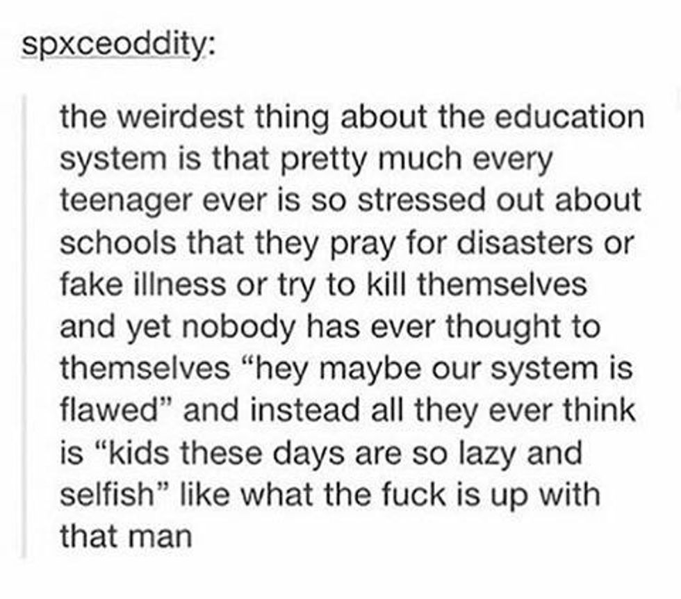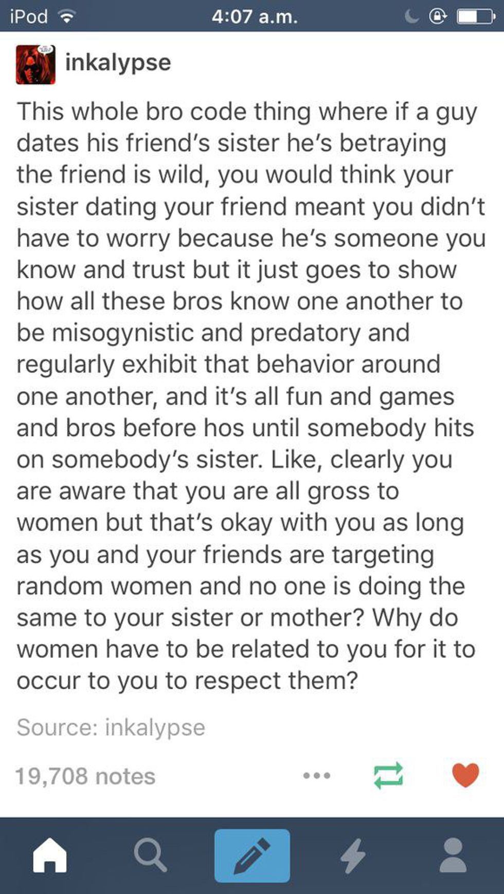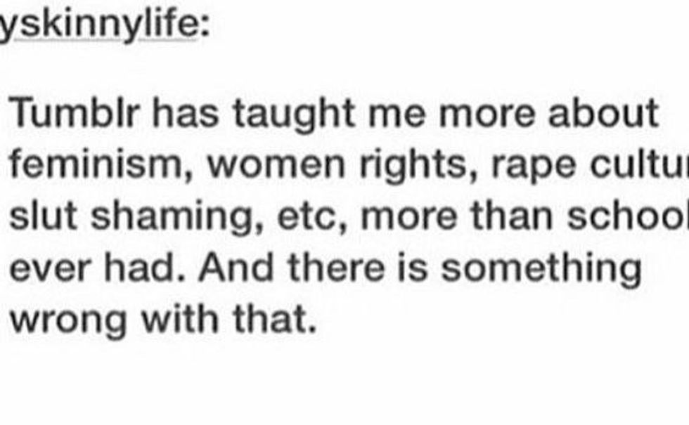 I have a Tumblr account that I don't use that often. Part of that is because I forgot my username and password and another part of that is because I always find the best of Tumblr on other platforms like Buzzfeed and Pinterest. But, I love Tumblr. I love how it connects people with the same interest. I love that there are people that are obsessed with things like Supernatural, Harry Potter, John Green, and that they allow themselves to be excited about the things that make them happy. I love that there are people who are in love with words and languages and flowers and fashion and film and science and they all gather on this one site and find solace in each other. Tumblr is a beautiful place. One of the things I love most about this platform is how it allows people to speak out against injustice. I have learned so much about problems within our societies i.e. rape culture, internalized misogyny and racism, the gender spectrum, etc. It teaches me things I never would have learned in school or at home. Because of Tumblr I am educated. I'm a senior in college and I feel educated, mainly, because of this website (although, I have taken classes that have expanded my mind tremendously! Augsburg College is a very socially aware school).