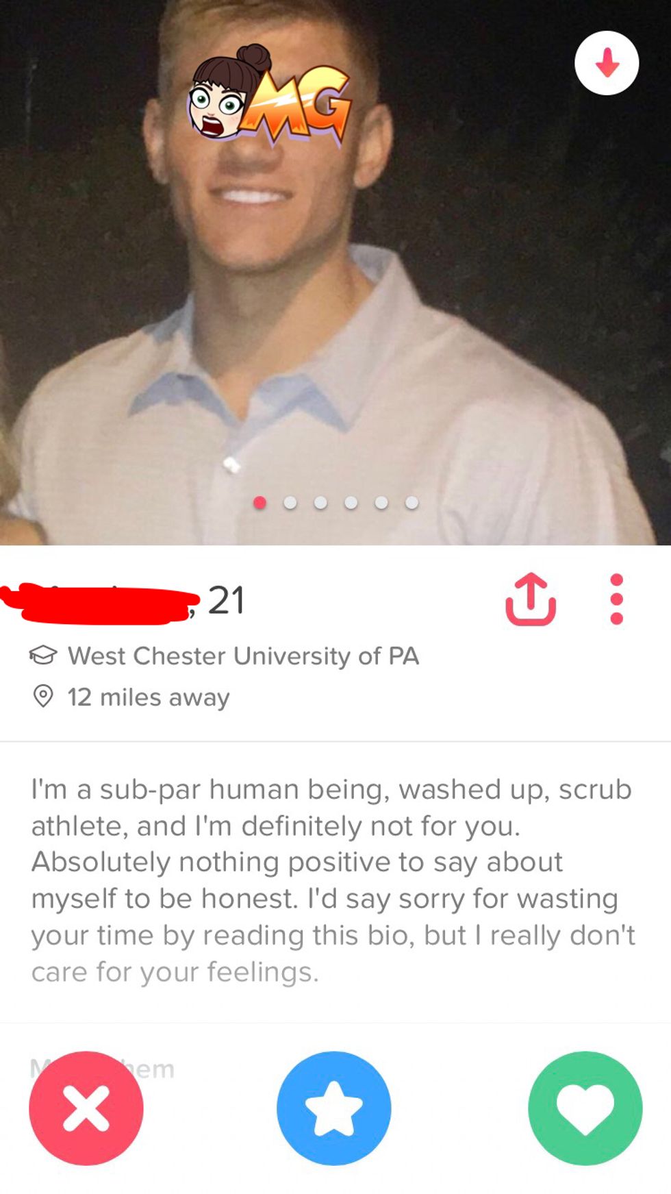 If you've ever been on Tinder, you know: there are all different kinds of people on the app. Some are obviously just looking to hook up, others who are actually looking for a relationship, and those who blend into the thousands of randoms that just don't seem that special. And then there are the crazies. Swipe left on enough of any variety, and you'll be heading straight for that delete button.