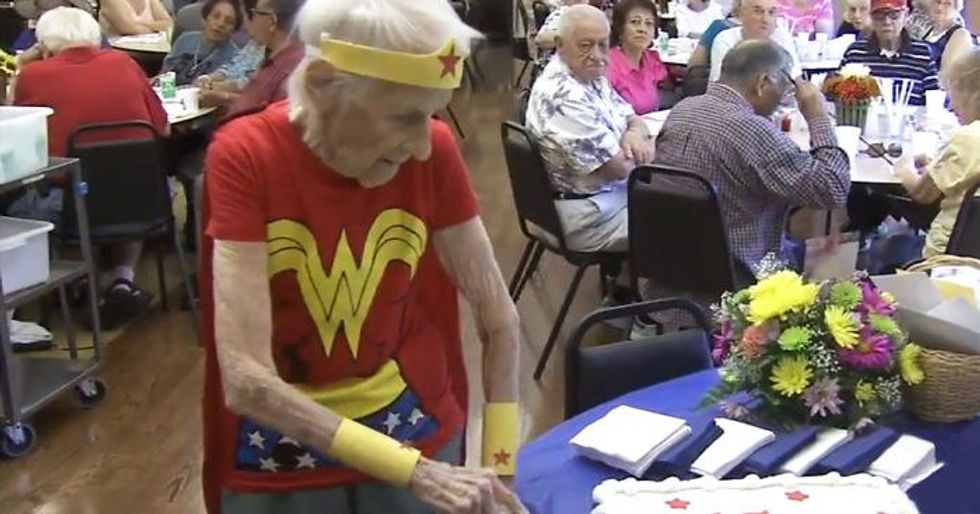 5. This 103 year old woman who celebrated her birthday by dressing up as Wonder Woman and volunteering at the senior center.