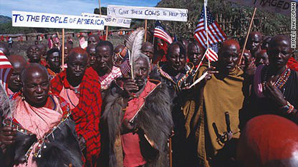 15. Last, but not least – A Kenyan boy turned Stanford student named Kimeli Naiyomah rallied his tribe back home to donate 14 cows, one of the most precious items one can own, and donated them to America after 9/11. Unfortunately, America could not accept the cows due to logistical and monetary problems. However, in a way of saying thank you, the U.S. set up 14 scholarships for local boys and girls in the village to attend school. Those scholarships are still in effect today. The “American” cattle remained in Kenya and is being cared for by the elders of Kimeli’s tribe. If you ever go there, you’ll know which ones are “America’s” by the special Twin Tower markings on their ears.