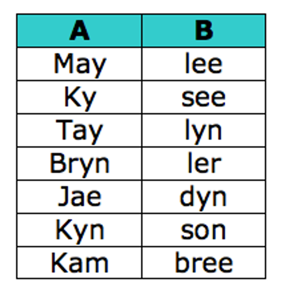 It's a running joke for locals. For example, using the chart above pick a chunk of name from column A, then mash it together with another chunk from column B! You've got yourself an instant Utah name. Add in random capitalizations as desired, and then tack on a traditional Utah last name (like Jensen, Smith or Young) to complete the effect.