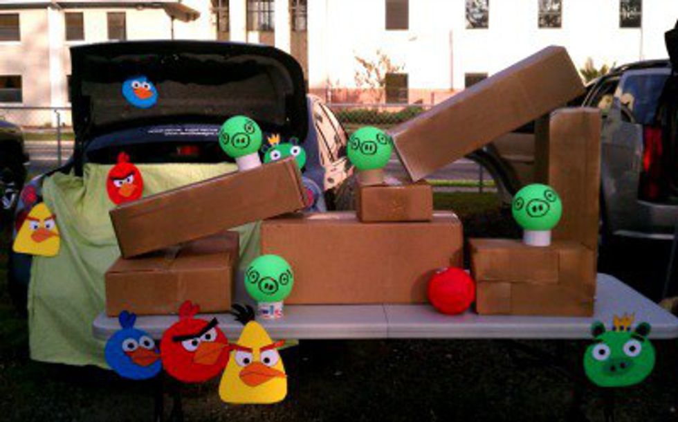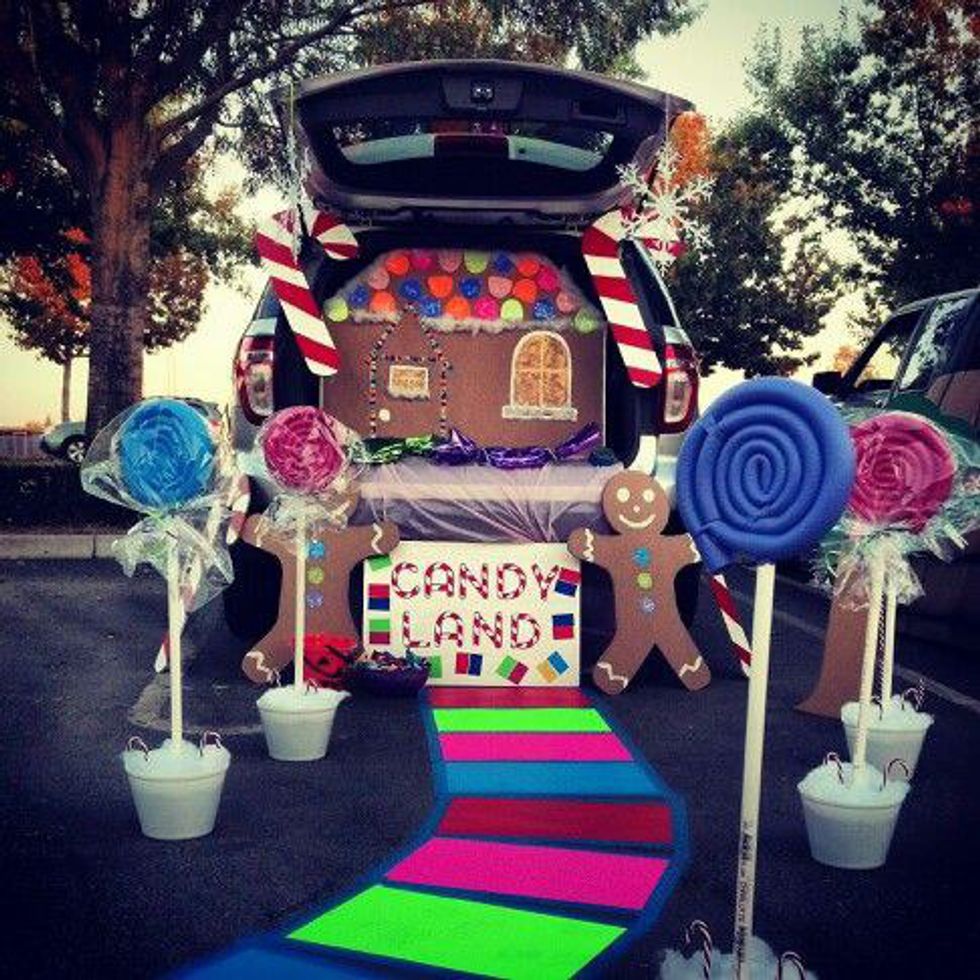 It doesn't always have to be a trunk full of candy! Try turning the trick-or-treating into a game like this one. If the child makes a certain score, he or she get a certain amount of candy. By mixing it up and making it different, your trunk can be the coolest one on the lot.