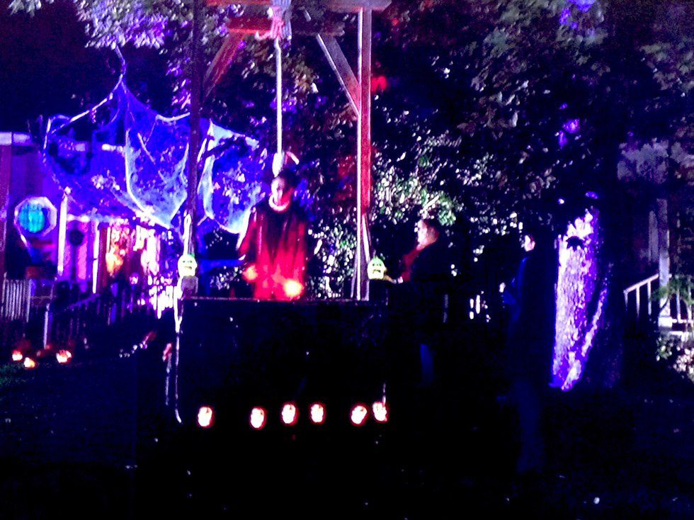 4. Then there was the time that she hung Morey from homemade gallows to scare the kids on Halloween. The things we do for love.