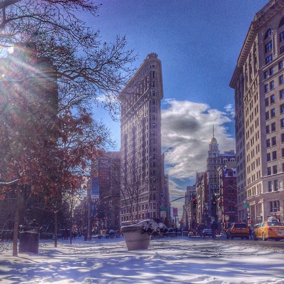 The Flatiron Building is one of the most historic buildings in NYC. It was built in 1902 and was one of the city's first skyscrapers. It is most notable for its unusually shaped design. During the holidays, the surrounding area comes alive with New York excitement. Winter-themed structures and statues sprout up across the street where Broadway and Fifth Ave. intersect, and the tip of the Flatiron Building showcases art from talented artists and sculptors that is both beautiful and themed! Madison Square Park across the street is the perfect spot for a holiday stroll, especially when coated with snow. It is a beautiful, serene, scenic, and "only in New York" place to be.