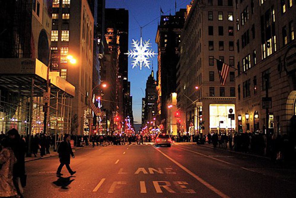 If you've never seen the giant snowflake that is hung above the intersection of 57th and Fifth during the holidays, you need to. It first appeared in 1984 and was redesigned in 2005 with 16,000 crystal prisms that illuminate the surrounding area with a glow that will warm your heart.