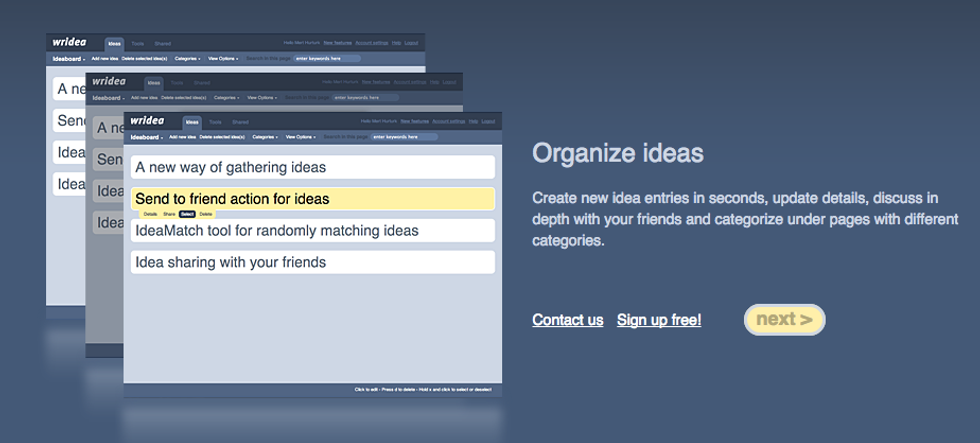 Wridea is another free online idea management service that hopes to help writers brainstorm, organize, and improve their ideas.