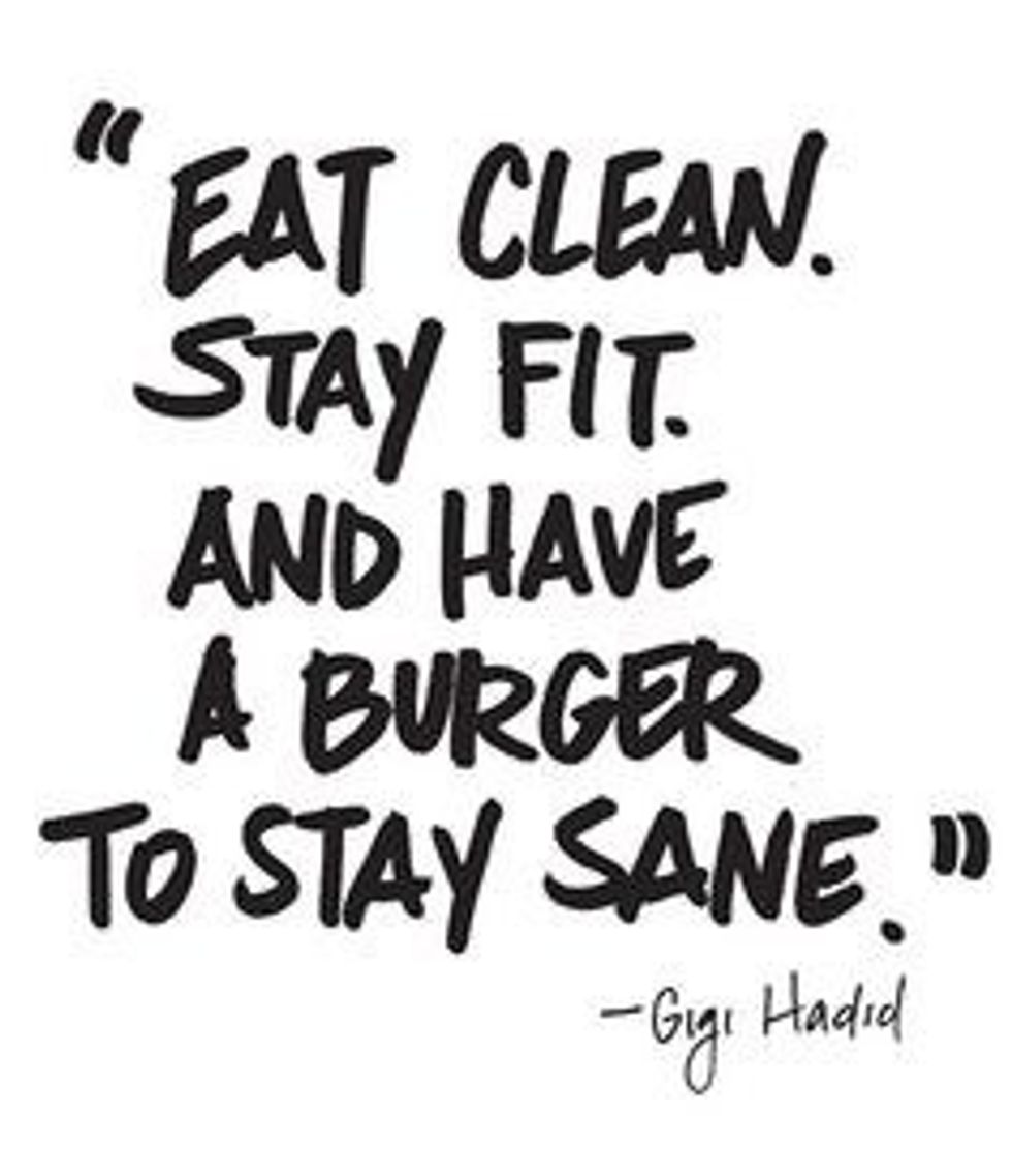 "I've always said, 'Eat clean to stay fit, have a burger to stay sane,'" Gigi Hadid told E! at "The Daily Front Row's" Fashion Los Angeles Awards. It’s similar to saying "everything in moderation," but no one has ever put it so eloquently.