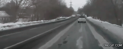 Remember this is winter driving. Random patches of ice or other winter road conditions can cause a driver to quickly slow down or stop. It is important to keep a safe distance between your car and the next car.
