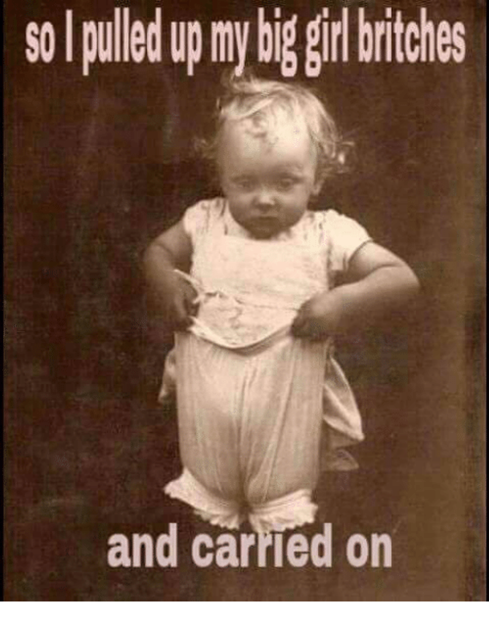 This word is used quite often when southern people describe someone as ''too big for their britches". So translated to layman's terms, they're talking about someone's pants and saying that they're too big for them in reference to a pompous attitude