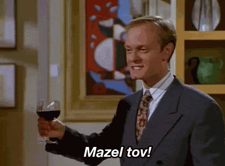 Mazel Tov means good luck or congratulations. If you're snarky like me, you can reply "mazel" when your friend is telling you about something incredibly mundane they had to do.