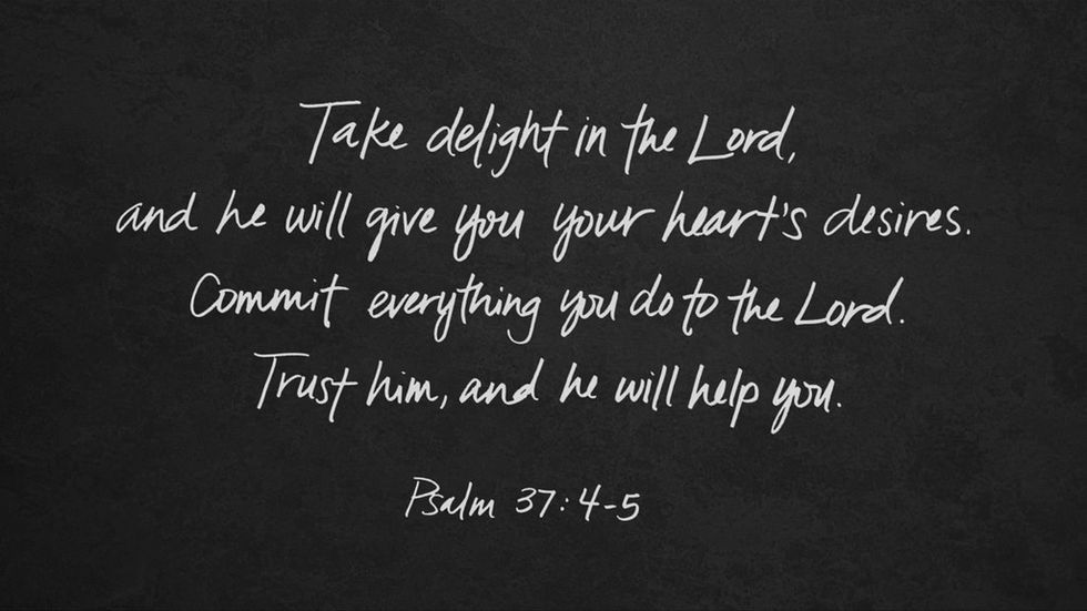 "Delight yourself in the Lord and he will give you the desires of your heart. Commit your way to the Lord, trust in him and he will do this."