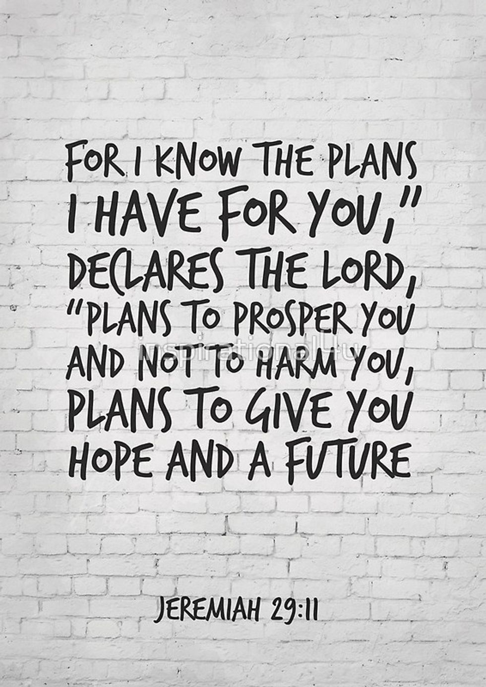 ""For I know the plans I have for you," declares the Lord, "plans to prosper you and not to harm you, plans to give you hope and a future.""